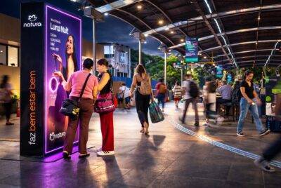 Nas áreas de grande fluxo, o DOOH se torna uma vitrine viva. É ali que o consumidor está circulando, decidindo, comparando preços e escolhendo onde gastar. E é por isso que escolhemos estar nos terminais urbanos, com mais de 900 telas espalhadas por São Paulo, Recife e Brasília, impactando milhões de pessoas todos os dias, oferecendo às marcas a oportunidade de aparecer exatamente no trajeto do consumidor.